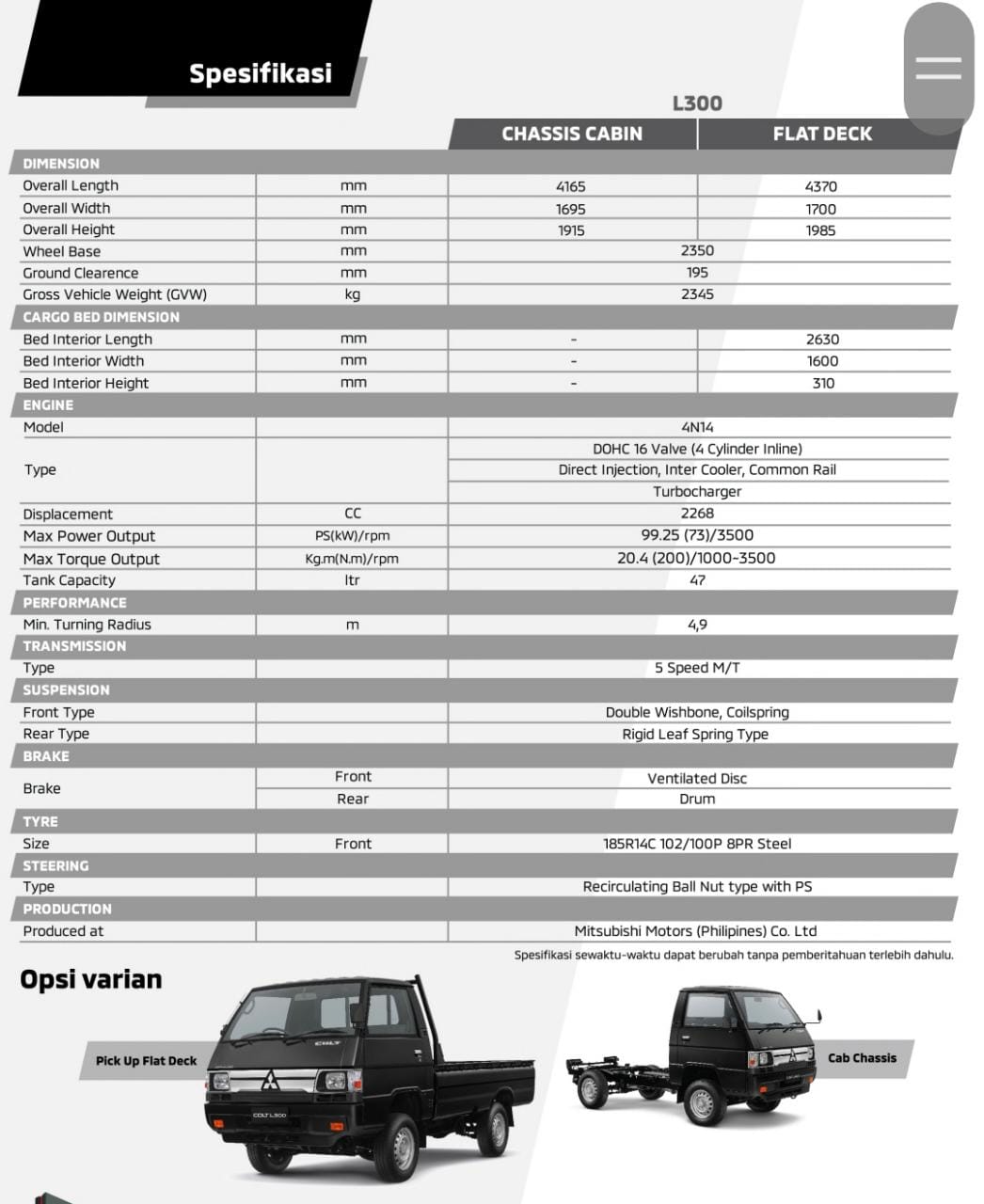 - Mitsubishi L300 Flat Deck Rp 251.200.000